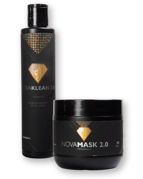 NovaKLEAN 2.0 (Champú): Champú específico para mantenimiento, formulado para ofrecer una limpieza profunda y aumentar notablemente la durabilidad de los tratamientos previos de la marca. Gracias a sus tensioactivos respetuosos y a ingredientes como proteína de arroz hidrolizada, proteína de soja hidrolizada, extractos de algas y pantenol, deja el cabello preparado para el siguiente paso.